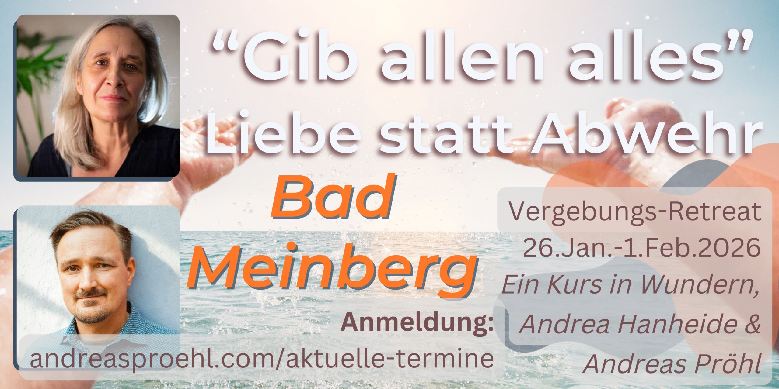 Gib allen alles – Liebe statt Abwehr 7 Tage "Ein Kurs in Wundern" in Bad Meinberg Du gehst heim und reagierst anders: ruhig, klar, liebevoll. 📅 26.01. – 01.02.2026 📍 Yoga Vidya, Bad Meinberg Mit